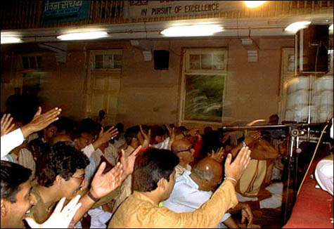 Charged up audience as tabla player reaches sum (first beat of rhythm cycle) at tabla solo